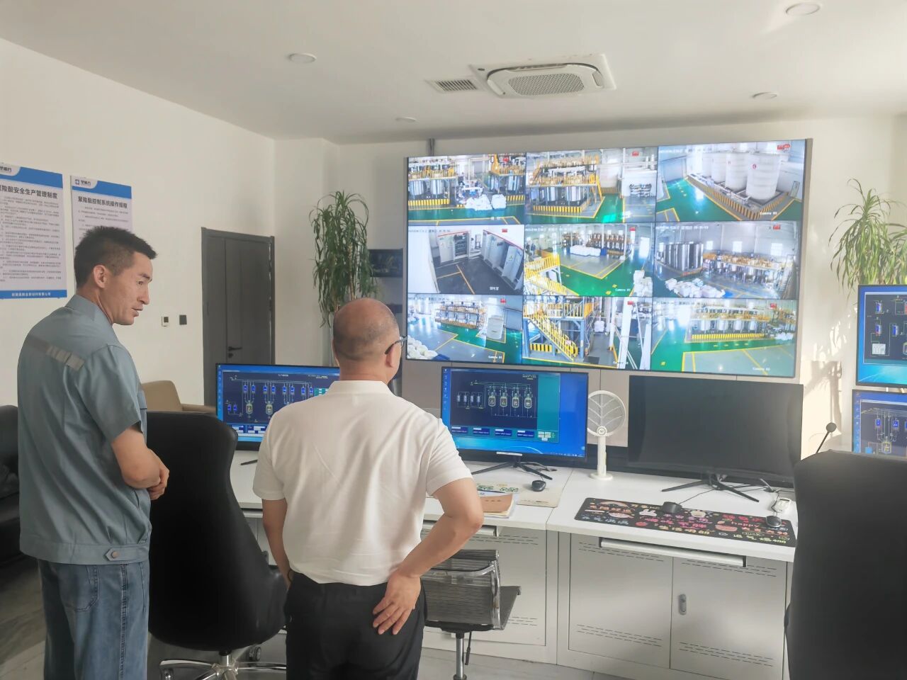 調研過程中,書記步入我公司生產車間,詳細了解聚羧酸減水劑、液體速凝劑產品的應用及使用領域。書記駐足觀看全自動化系統設備運行,對公司引入的數字化生產管理系統、企業高效有序的生產流程、嚴格的質量把控體系給予肯定。