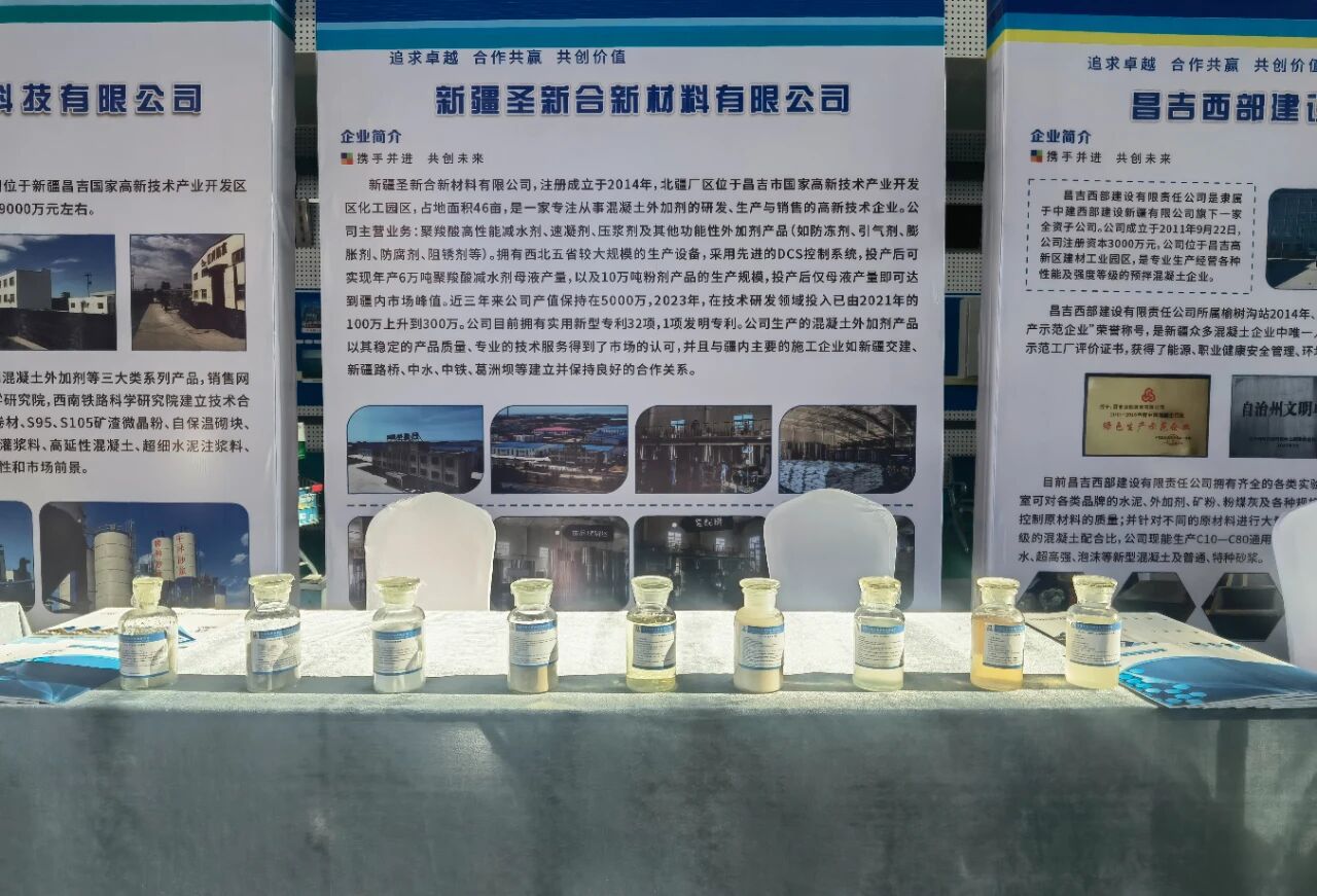 活動現場氣氛熱烈,新疆圣新合新材料有限公司的展位吸引眾多參會者駐足。公司展示了旗下一系列高性能、環保型的新材料產品,涵蓋混凝土外加劑、建筑保溫材料等多個領域。這些產品憑借卓越的性能和穩定的質量,在疆內眾多重大項目中得到廣泛應用,如中鐵五局水利項目、新疆路橋S101隧道工程及高速公路工程項目等,圣新合也成為眾多在建、建成及將建項目的指定外加劑供應商,在行業內樹立起良好口碑。